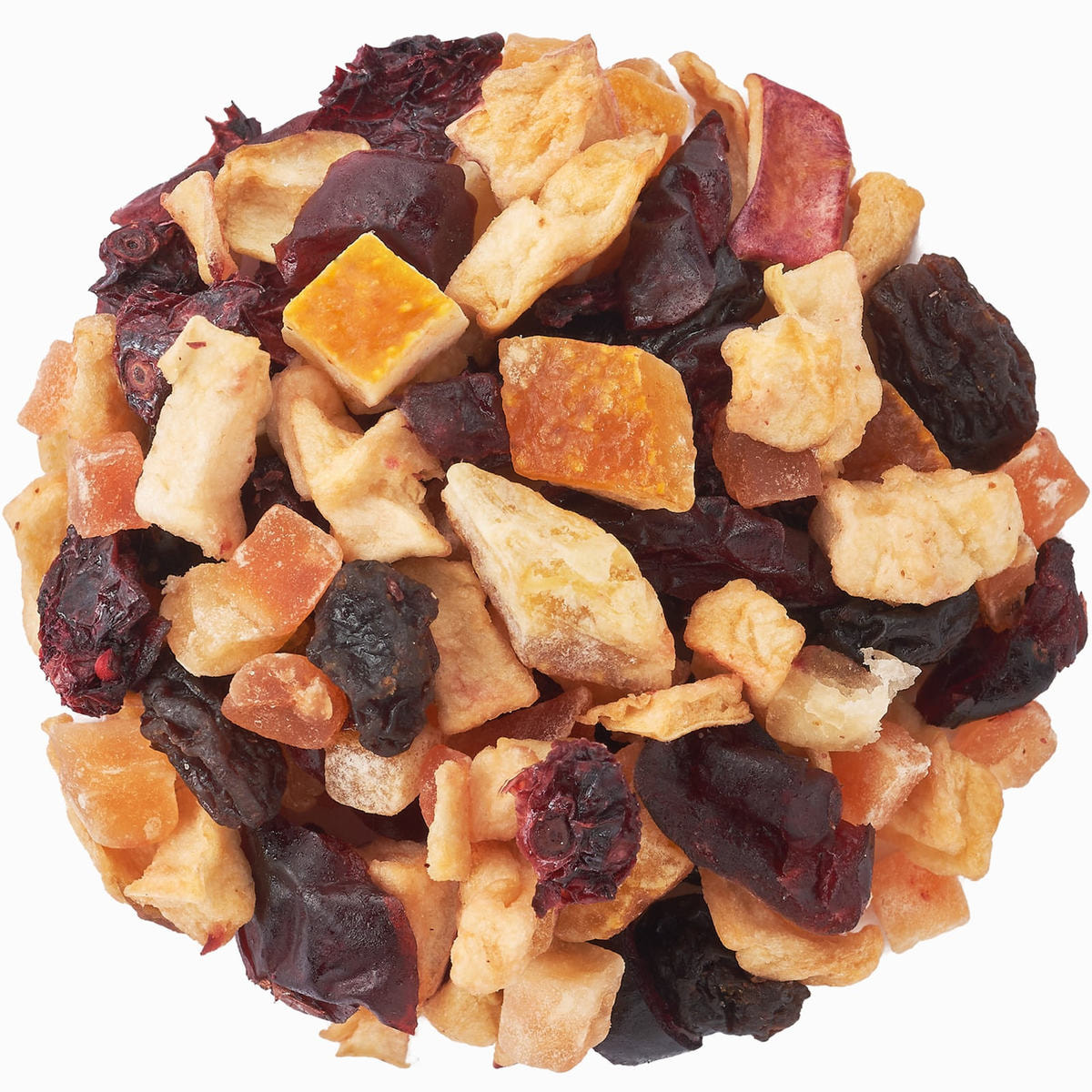 加糖ドライクランベリー(アメリカ製造)、加糖ドライパパイヤ、有機ドライアップル、加糖ドライオレンジピール、トンプソンレーズン、有機ドライクランベリー/香料、クエン酸、保存料(亜硫酸塩)